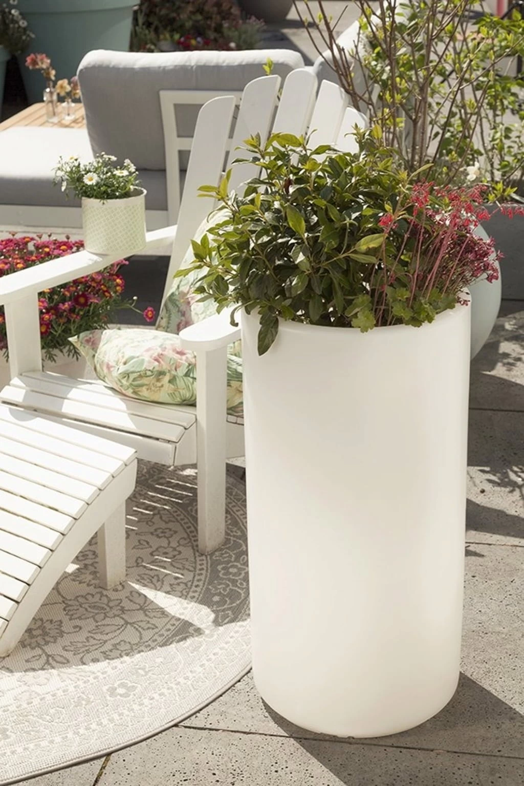 Jetzt wird’s bunt! Die aus hochwertigem Kunststoff gefertigten „Shining Pots“ sind bereits im ausgeschalteten Zustand ein einzigartig elegantes Deko-Objekt, das deine Pflanzen gekonnt in Szene setzt und mit seiner puristischen und klaren Formensprache begeistert. Mittels der im Lieferumfang enthaltenen Fernbedienung kann die Lichtfarbe des vorinstallierten RGB LED-Leuchtmittels beliebig gewählt werden: 15 Farben, 5-fach dimmbar stehen zur Auswahl. So wird dieses einzigartige Pflanzgefäß zu einem absoluten Blickfang – sowohl im Innen- als auch im geschĂĽtzten AuĂźenbereich.
