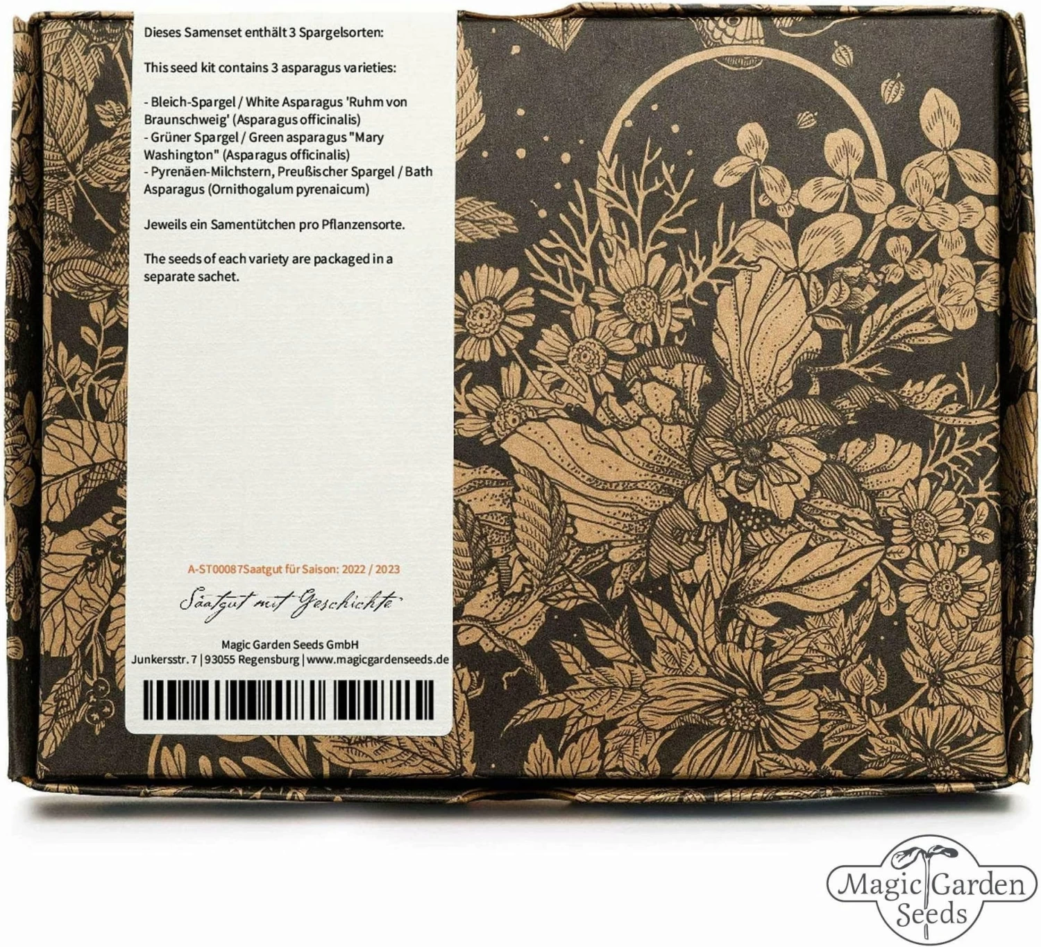 Im Set enthalten ist eine ausfĂĽhrliche Aussaat-Anleitung sowie drei alte Spargelsorten: