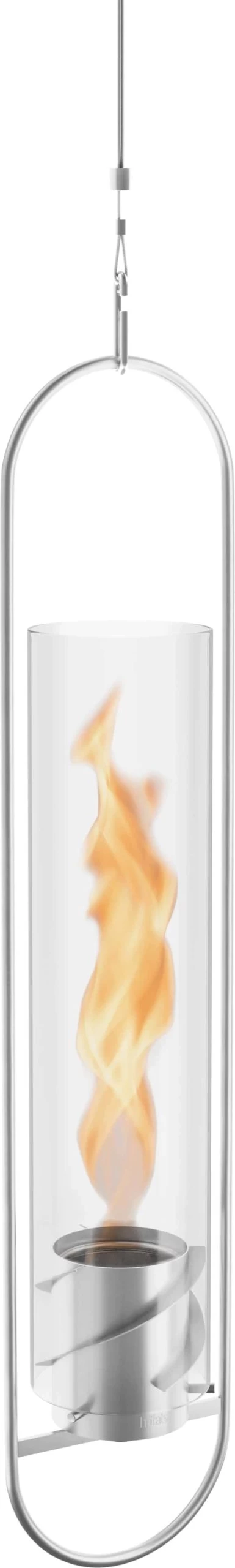 An einem schicken, höhenverstellbaren Edelstahlseil kann das Hängefeuer sowohl im Innen- als auch im Außenbereich befestigt werden – elegant in der Luft schwebend sorgt es für angenehme Wärme, tanzenden Lichtschein und eine gemütliche Wohlfühlatmosphäre.