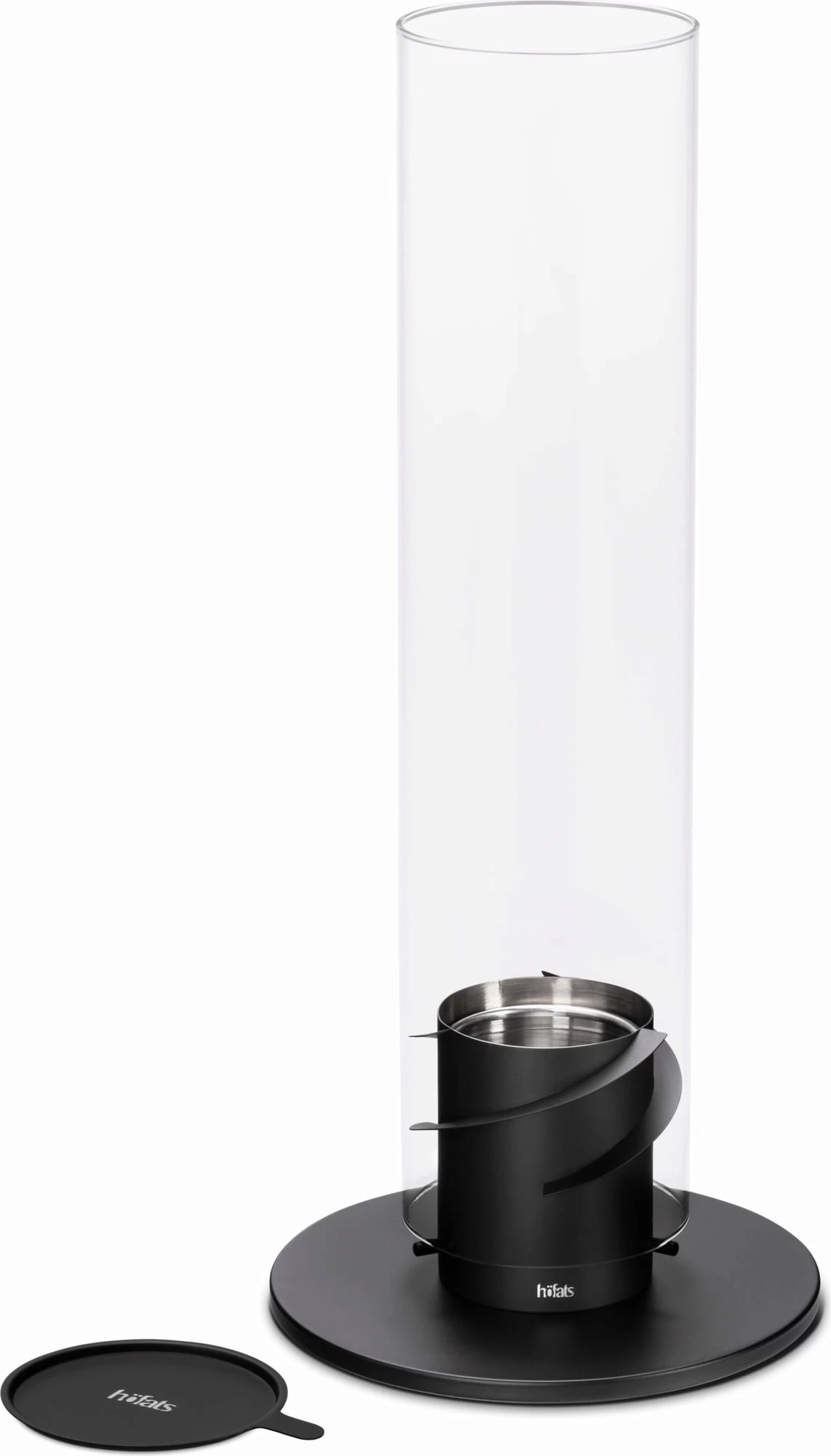 Der hinreißende Flammenwirbel gelingt ganz einfach: In den Fuß wird eine Dose mit Bio-Ethanol eingesetzt, dieser entzündet und der Zylinder aus edlem Borosilicatglas aufgesetzt. Schon beginnt sich die Flamme zu drehen und zaubert für bis zu 80 Minuten eine angenehme Wärme und eine harmonische Atmosphäre.