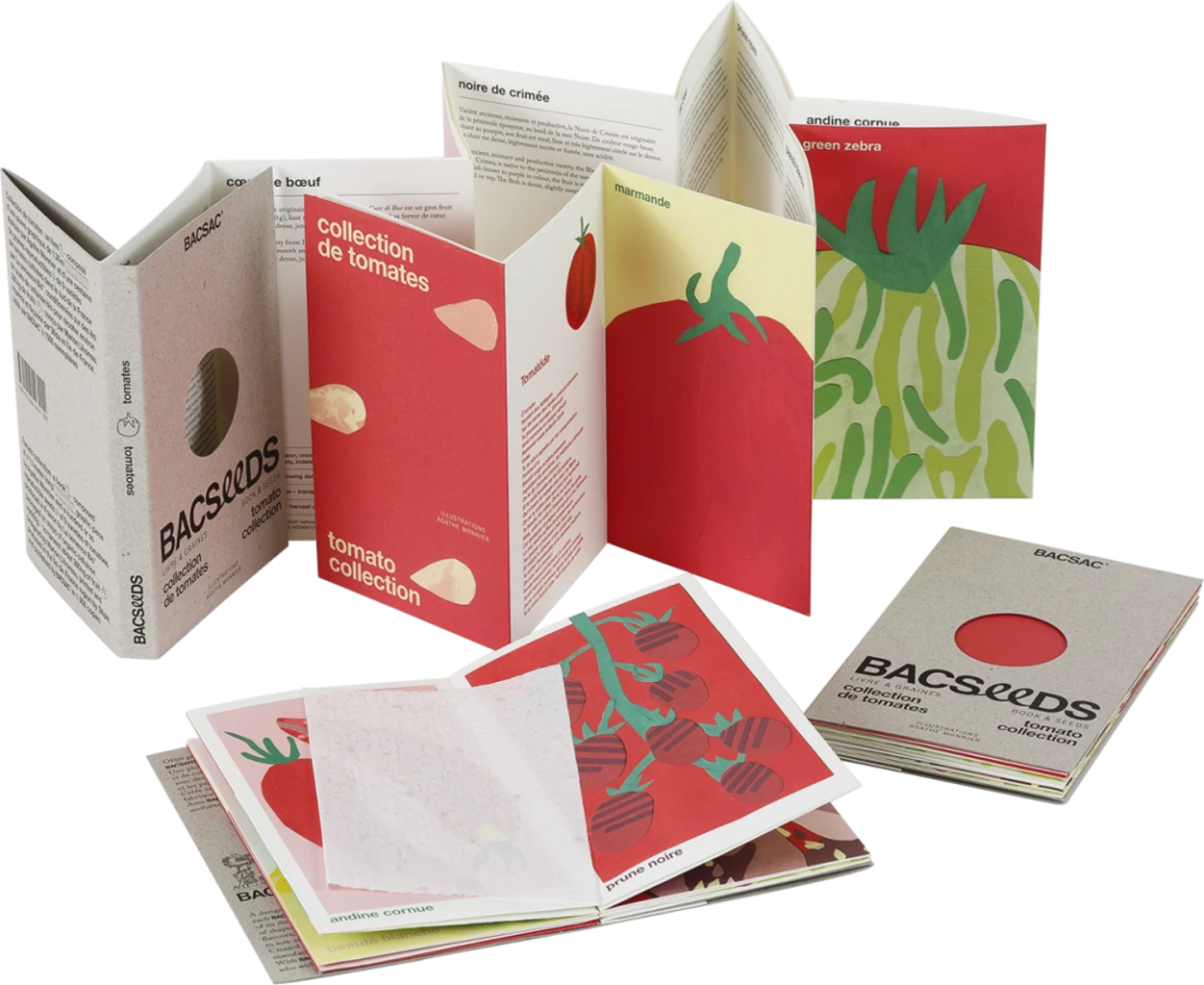 Das Tomatensamen-Buch von BACSAC® lädt auf eine literarische und experimentelle Reise in die Welt der Tomatenvielfalt ein. Erfreue dich an etwa 100 vermehrungsfähigen Samen von 9 verschiedenen Tomatensorten, die bis zu 300 kg Ernte abgeben.