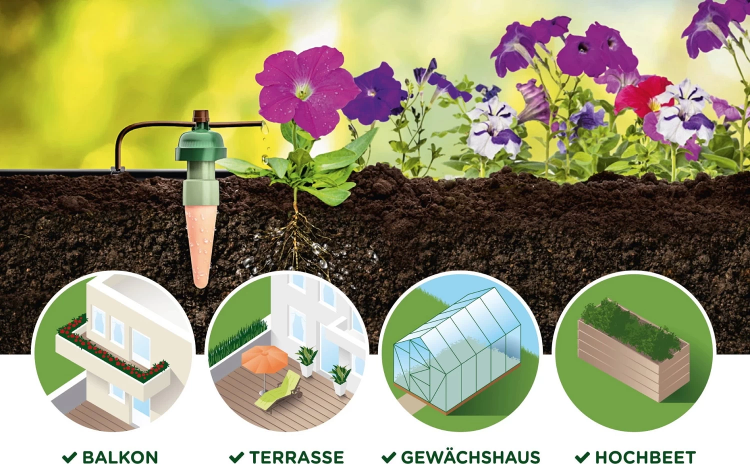 Die ideale Erweiterung für dein Blumat-System! Die Tropfer sind schnell und unkompliziert montiert und bereits mit einem 20 cm Tropfschlauch ausgestattet. Wie gewohnt arbeitet Tropf-Blumat durch den Feuchtefühler automatisch und versorgt deine Pflanzen stets mit der optimalen Wassermenge.
