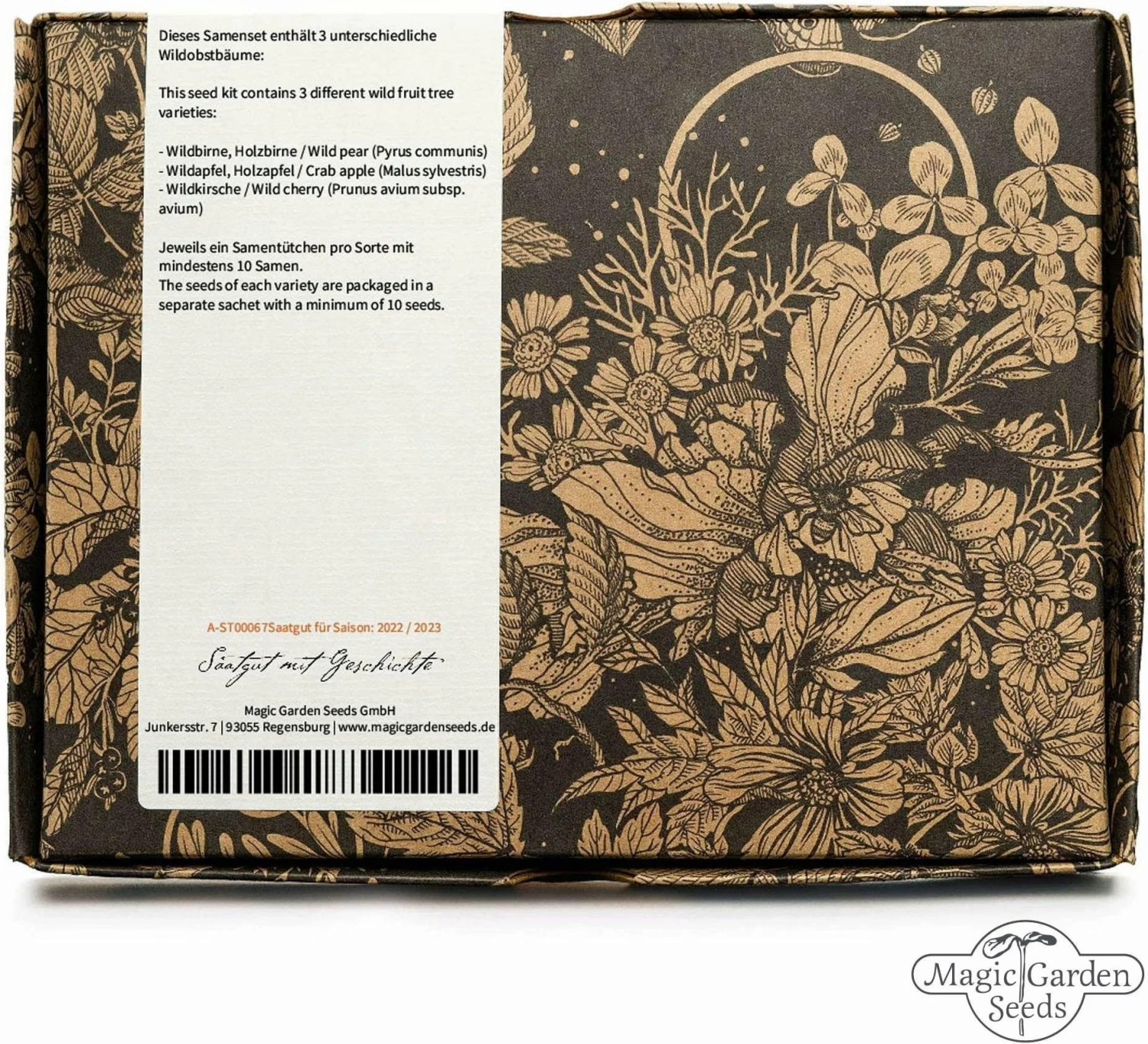 Dieses Set enthält drei alte Obstsorten in ihrer Wildform – sozusagen die Vorfahren unserer heutigen kultivierten Apfel-, Birnen- und Kirschbäume. Alte Sorten sind in der Natur immer seltener zu sehen, dabei sind sie unverzichtbar für viele Tiere, denn sie bieten Nahrung und Schutz. Eine Hecke dieser Wildarten ist daher ein wahrer Segen für Vögel, Igel und Co. Wenn man möchte, kann man die Früchte auch zu Most oder Marmelade weiterverarbeiten.