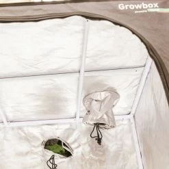 Das in die Growbox integrierte Abluftsystem bestehend aus einem Aktivkohlefilter, Rohrventilator und Abluftschlauch hemmt unangenehme GerĂĽche, indem es Geruchspartikel bindet.