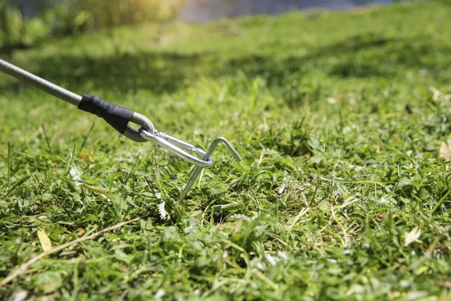 Zur Befestigung von Vliesen und Folien im Erdbereich, sowie zum Spannen von Abdeckplanen.
