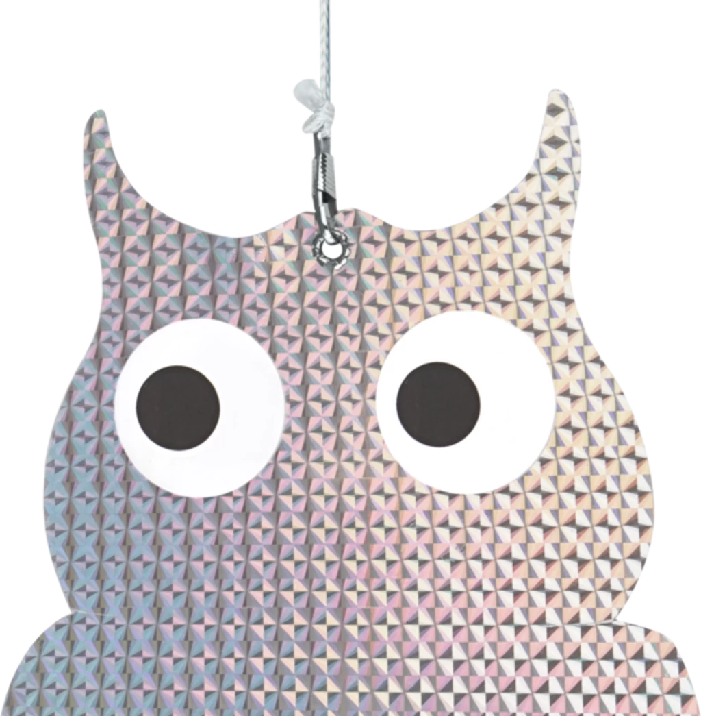 Der natürliche Vogelschreck ist optimal für den Einsatz an Obstbäumen und Sträuchern um Vögel abzuschrecken. Die geschmackvollen Eulen halten durch die beidseitig reflektierende Oberfläche Vögel aus deinem Garten fern und deine Früchte und Beeren bleiben somit am Baum.