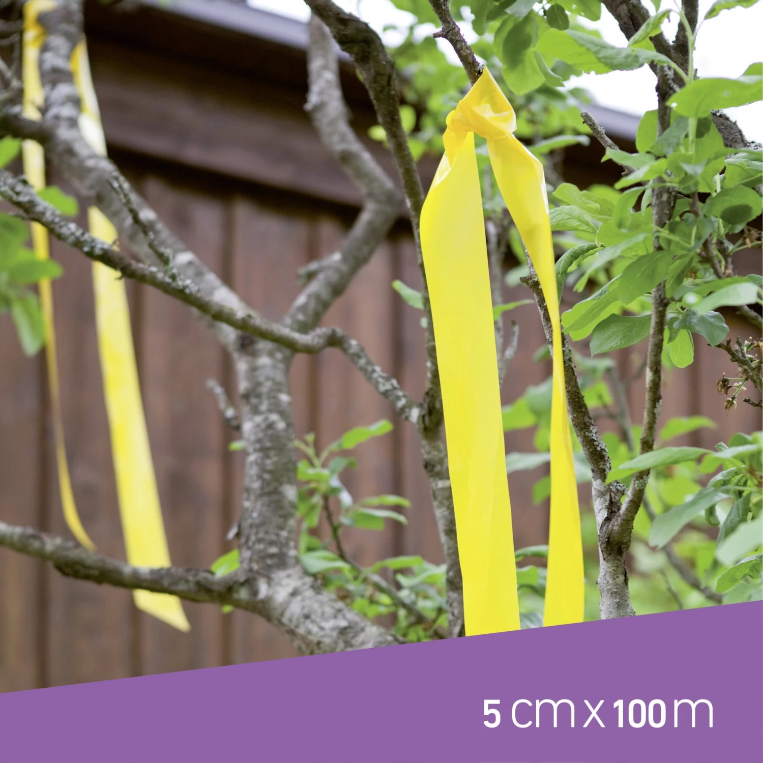 Schneide je 50 cm vom Band ab und befestige es an Baum und Strauch, so werden deine Früchte und Beeren von Vögel in Zukunft sicher sein. Denn durch die gelbe Signalfarbe und das Flattern des Bandes im Wind werden Vögel von deinem Garten fern gehalten.