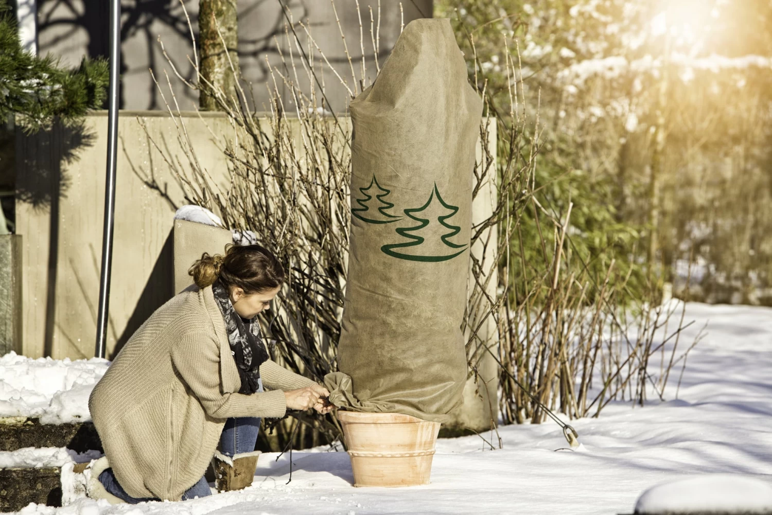 Die winterlich dekorativen Schutzhauben für kälteempfindliche Gartenpflanzen sind nicht nur hübsch anzusehen, sie schützen Pflanzen vor Frost, Schnee und Wind. Einfach über die Pflanzenkrone stülpen und die Kordel zuziehen. Deine Pflanze wird es dir danken.
