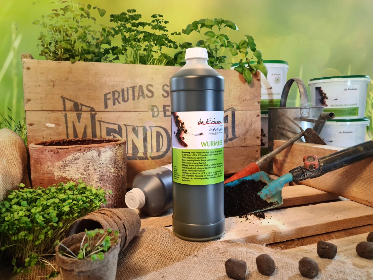 Der Wurmtee ist ein Auszug aus Regenwurmhumus, der in seiner Zusammensetzung die ideale NĂ€hrlösung fĂŒr Pflanzen darstellt. Diese wachsen krĂ€ftiger, robuster und bringen dadurch auch höhere ErtrĂ€ge.